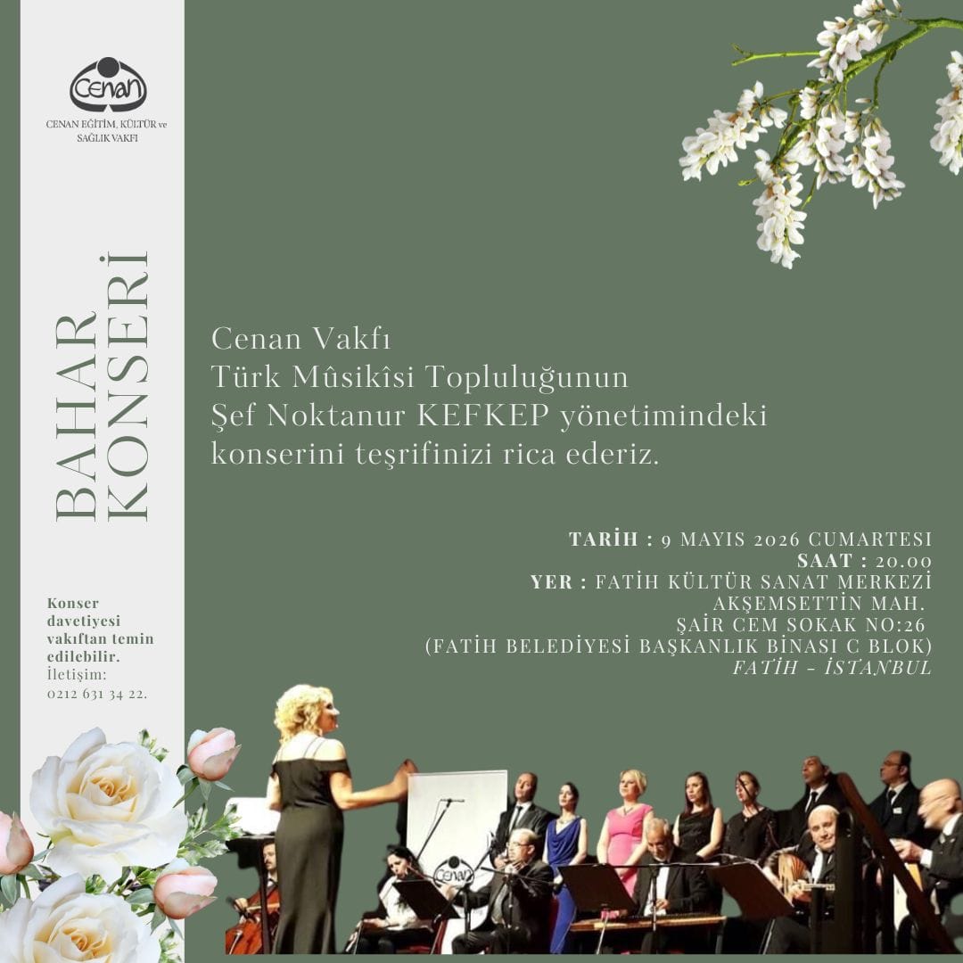 Cenan Vakfı Türk Mûsikîsi Topluluğunun Şef Noktanur Kefkep yönetimindeki konserini teşrifinizden…