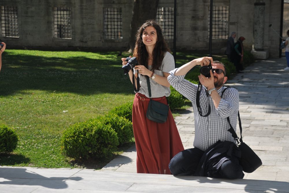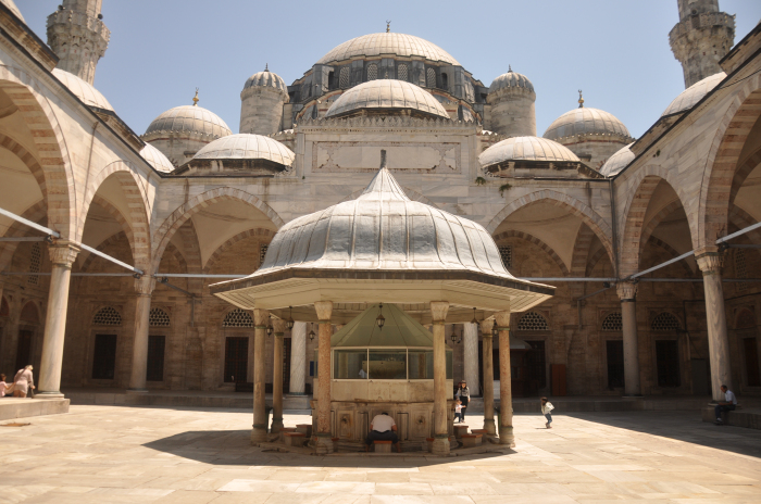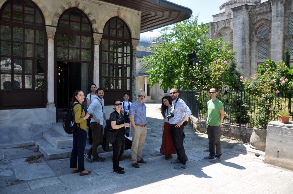 Tarihin esintilerinin üzerine sindiği daracık sokaklardan geçip, İstanbul yarımadasının Haliç, Marmara, Topkapı Sarayı ve Boğaziçi’ni gören ve Osmanlı külliyeleri içinde ikinci büyük külliye olan Süleymaniye Külliyesi’nin içine girince gördüğümüz manzaraya hayran kaldık. Kocaman bir bahçenin içine inşa edilmiş cami, medreseler, darüşşifa, darülhadis, çeşme, darülkurra, darüzziyafe, imaret, hamam, tabhane, kütüphane ve dükkânlardan meydana gelen bir külliye ve Klasik Osmanlı Mimarisinin en önemli örneklerinden bir olan, Mimar Sinan’ın muhteşem eseri Süleymaniye Camii’ni gezdik. Caminin içinde Kanuni sultan Süleyman’ın ve eşi Hürrem sultan’ın bulunduğu hazireyi ziyaret ettik.