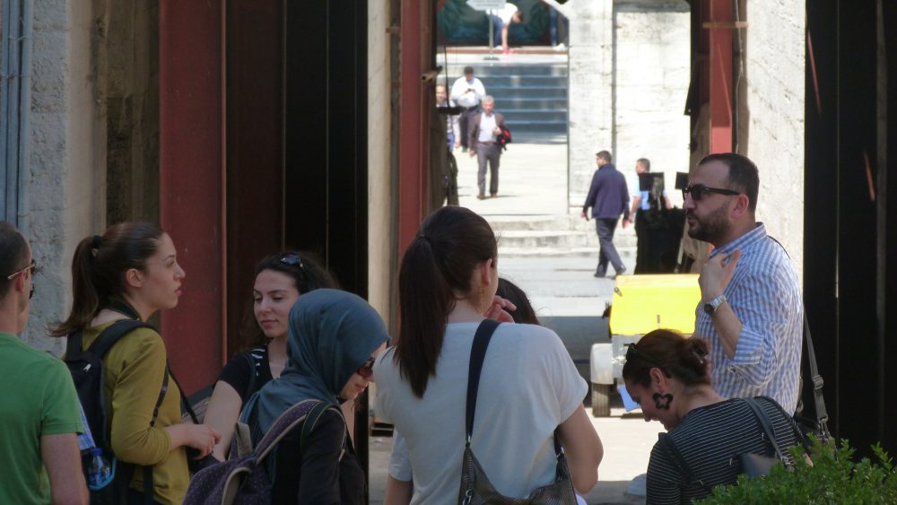 Caminin avlusundan dışarı çıktığımızda, Mimar Sinan’ın Muhteşem Süleymaniyesi’nin eteklerinde, kendisinin isteği ile yapılan mütevazi türbesi ile karşılaşınca her birimiz düşünmeden edemedik, sadelik ve sanatkârlık aslında ne kadar da birbiriyle iç içe girmiş bizim kültürümüzde…