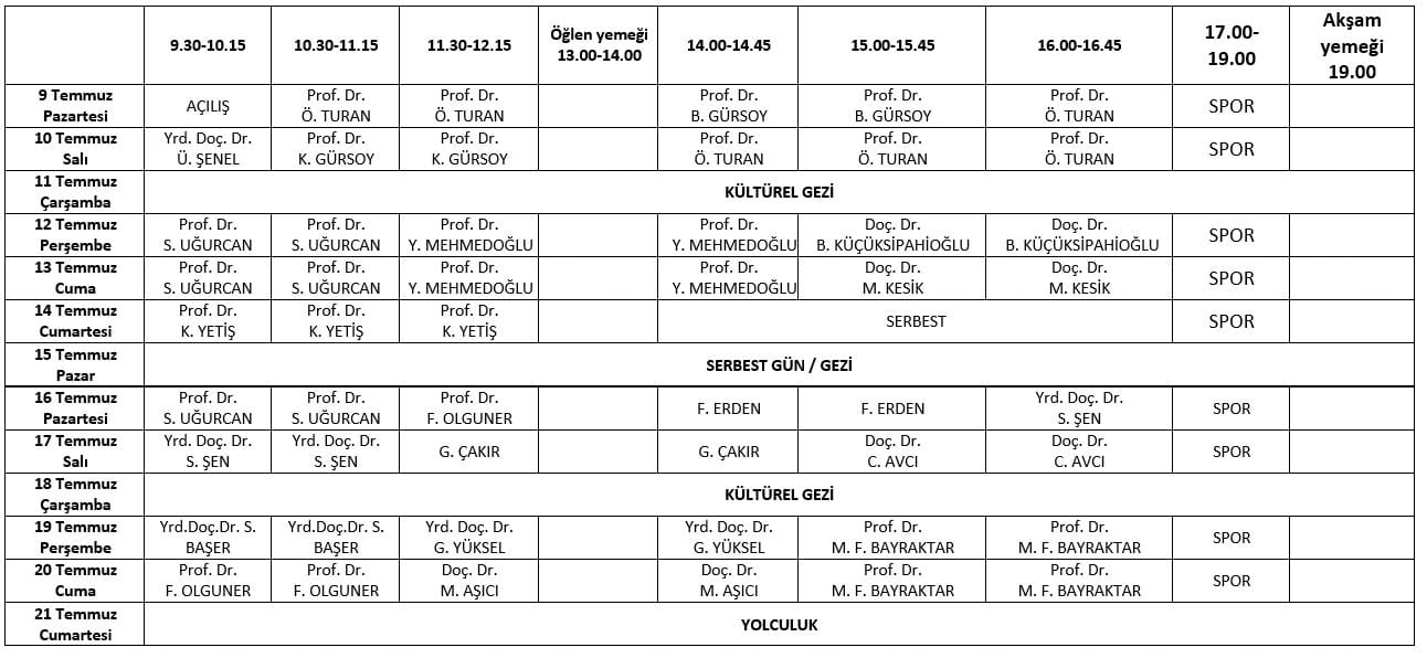 Öğretmen Grubu: (Kurs Programı: 08 Temmuz – 21 Temmuz 2012)