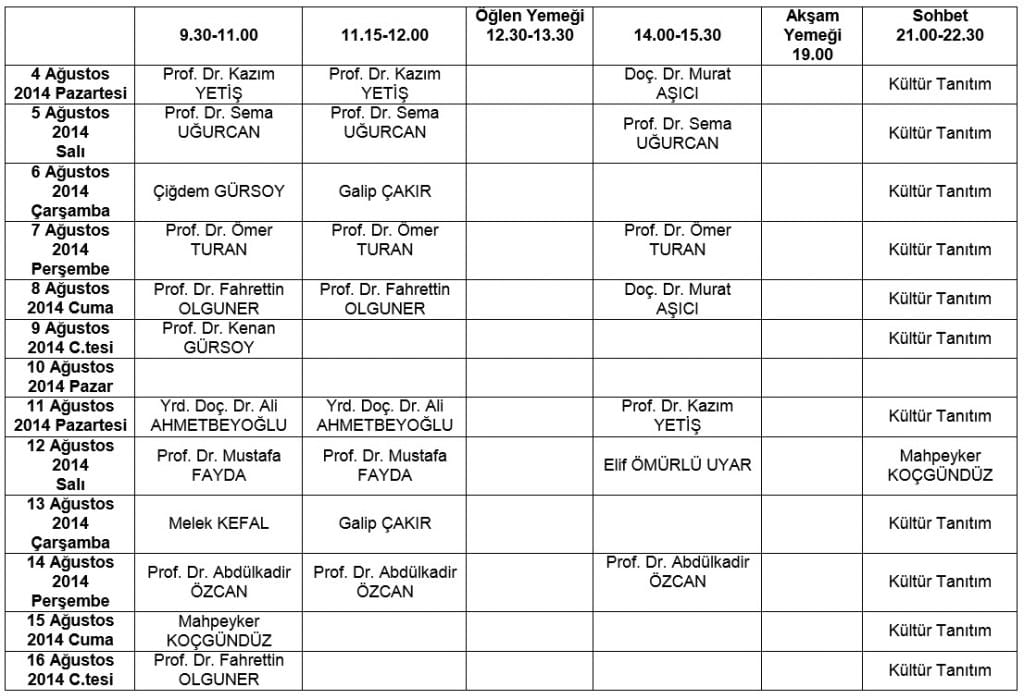 Not: Çarşamba ve Cumartesi günleri derslerimiz 9.00- 11.15 (3 ders) arası yapılacaktır.