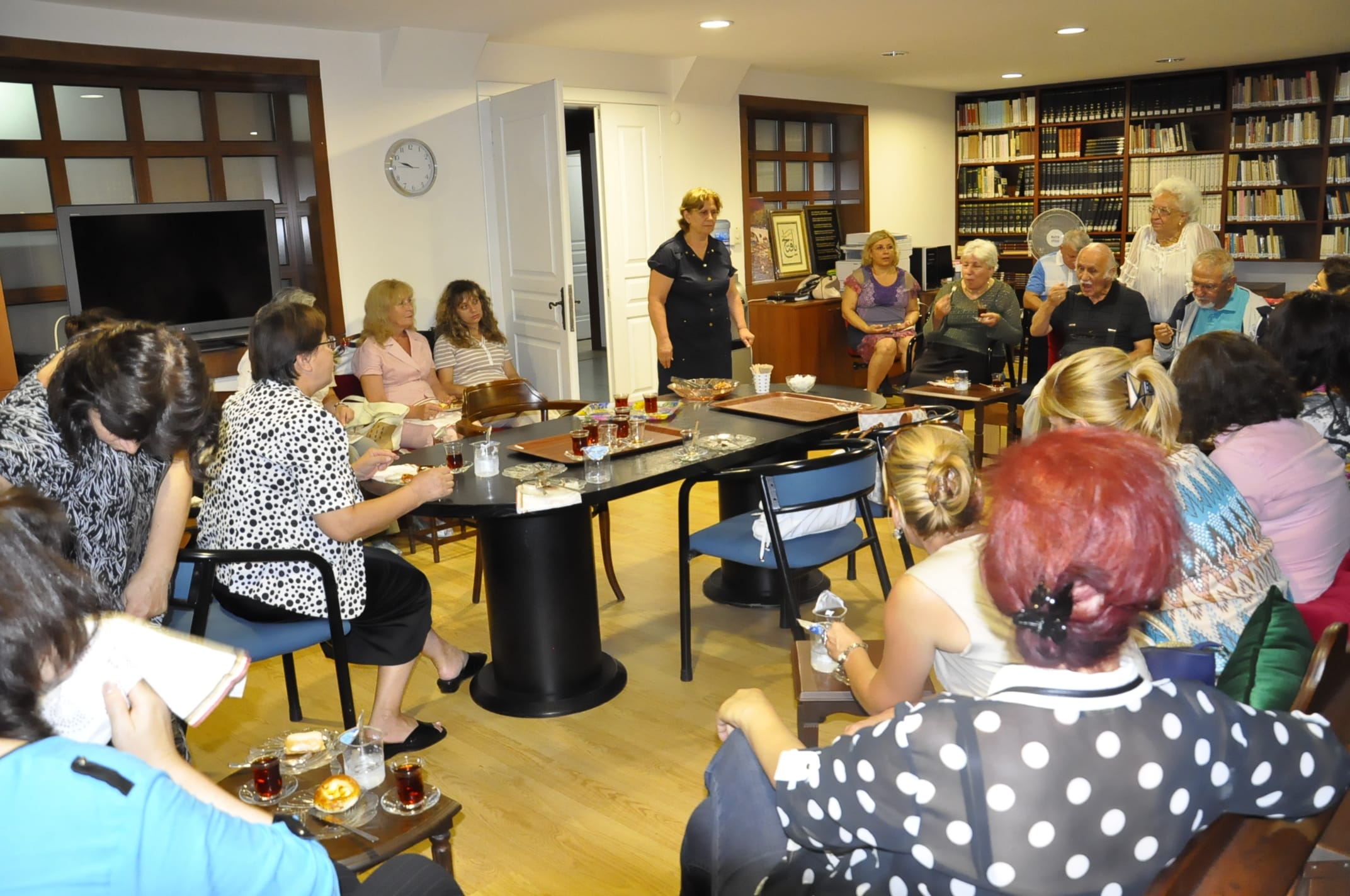 Programda, Vakıf Yönetim Kurulu 2. Başkanı Prof. Dr. Fahrettin Olguner’ in hoşgeldiniz konuşması ardından, Mütevellî Heyet üyelerimizden Psikolog Mahpeyker Koçgündüz “Değerler” üzerine bir konuşma gerçekleştirdi. Koçgündüz, somut ve soyut şeylerin bir temele oturtulmasını ve anlam kazanmasını, insanı da insan yapanın ve yaşamaktan öteye bir kimlikle var olmasını sağlayanın değerler olduğundan, ancak değerlerin de sürekli değişmekte olduğundan bahsetti. Buna göre 21.yy’da insanî ilişkilerin, mekanikleşmenin de bir sonucu olarak, giderek değişmesi ve değerlerin farklılaşması bazı problemler doğurmuştur. Koçgündüz, değerlerimizi yeniden hatırlayarak bu problemlerin çözümünü bulmaya çalışmanın, Cenan Eğitim Kültür ve Sağlık Vakfı’nın hedefleri arasında olduğunu belirtti. Bugün vakıf merkezi olarak kullanılan, 1908-1925 yılları arasında dergâh olan, binâda geçmişteki yaşayış tarzı, dergâh âdâbı, yeme-içme, günlük yaşantı, hayata dâir temel prensipler, kurallara uyma ahlâkı vb. ile ilgili bilgiler verdikten sonra yaşanan incelik, zarâfet ve prensipli hayatın muhafaza ettiği değerlerin tekrar keşfedilmesi gerektiğinden bahsetti. Sohbetin ardından Vakıf Müzesi ziyaret edilerek binânın tarihçesi hakkında bilgi verildi.