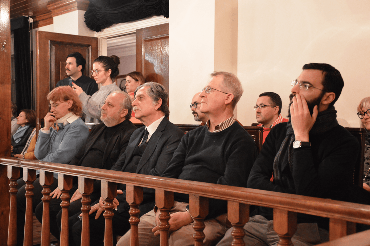 Sophia Üniversitesi Başkanı, İlâhiyat, Felsefe ve İnsan Bilimleri Bölümü Profesörü Monsenyör Pietro Francesco Coda ve Vakıf Başkanımız Prof.Dr. Kenan Gürsoy, vakfımızın konferans salonunda birer konuşma yaptılar.