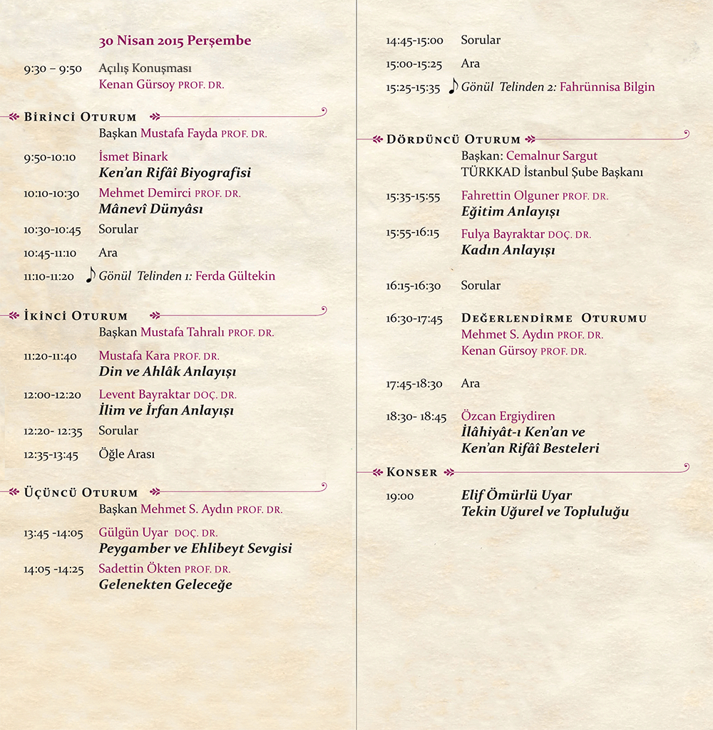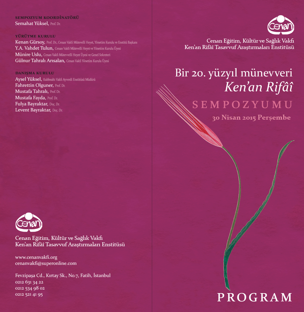 İstanbul’da 30 Nisan 2015 târihinde düzenlenen Bir 20. Yüzyıl Münevveri: Ken’an Rifâî başlıklı toplantıyı değerli katkılarıyla zenginleştiren bütün katılımcılara ve programın yürütülmesinde emeği geçen gönül dostlarına teşekkürler ederiz.