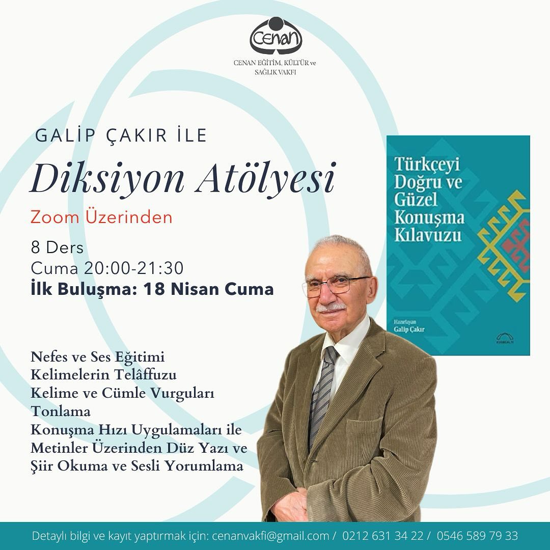 Galip Çakır yürütücülüğünde “Diksiyon” Atölyesi 18 Nisan 2025 Cuma günü başlayacaktır.