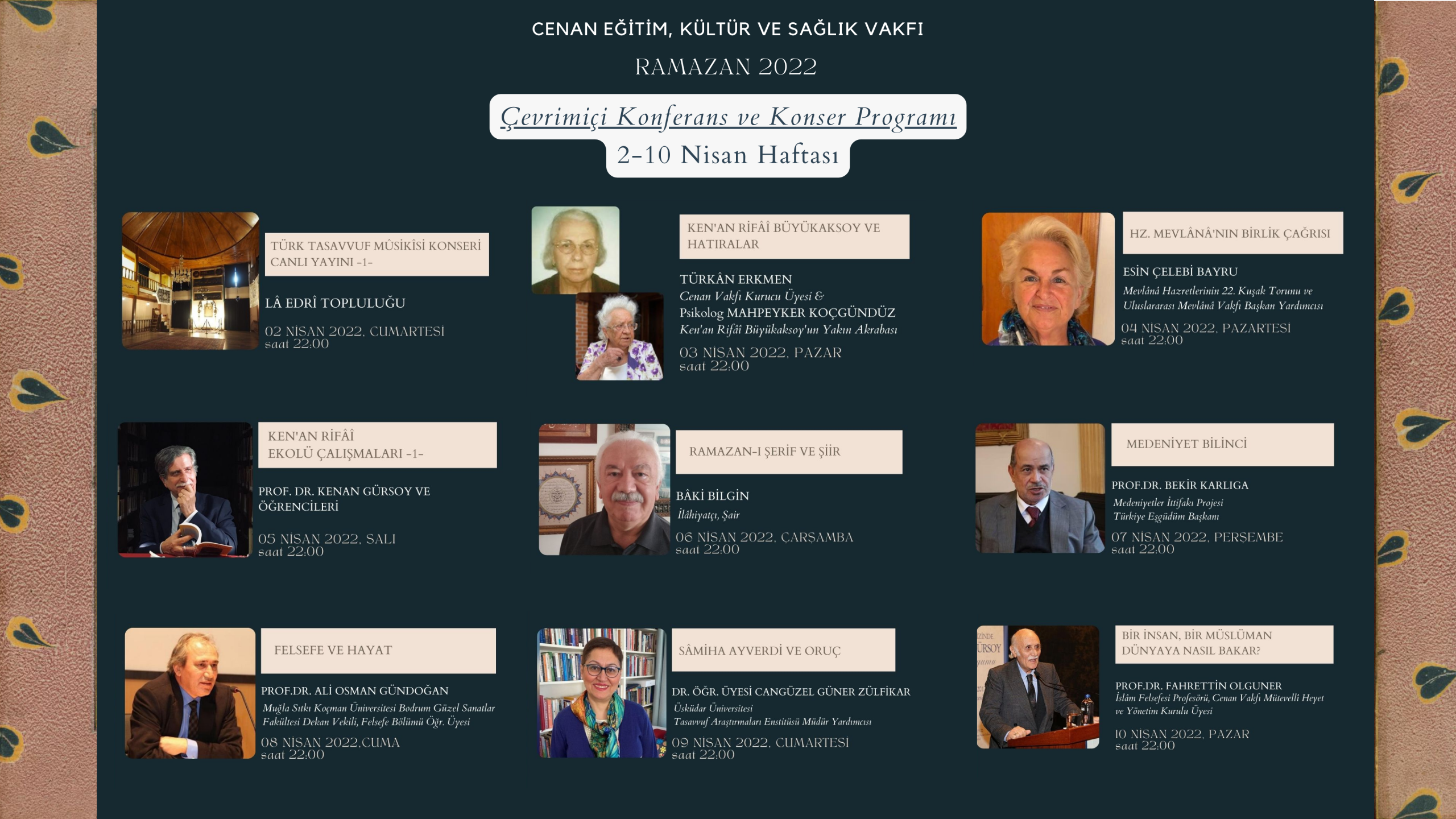 Cenan Eğitim, Kültür ve Sağlık Vakfı olarak Ramazan ayı boyunca devam edecek çevrimiçi konferans ve…