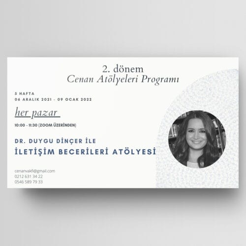 Dr. Duygu Dinçer ile “İletişim Becerileri” Atölyesi 12 Aralık 2021 Pazar günü saat 20:00’de başlayacaktır.