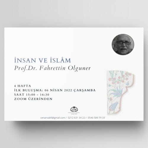 Marmara Üniversitesi İlâhiyat Fakültesi Türk İslâm Düşüncesi Tarihi Bilim Dalı Emekli Öğretim Üyesi Prof. Dr. Fahrettin Olguner ile “İnsan ve İslâm” başlıklı atölyemiz 6 Nisan 2022 Çarşamba günü saat 15.00’te başlayacaktır.