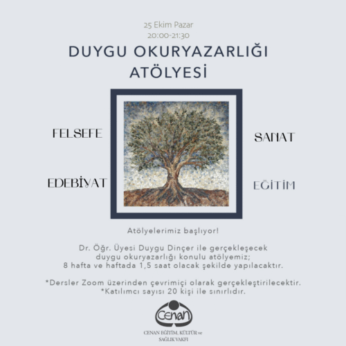 Vakfımız tarafından düzenlenen “Cenan Atölyeler” kapsamında, 8 hafta süreyle Pazartesi geceleri…
